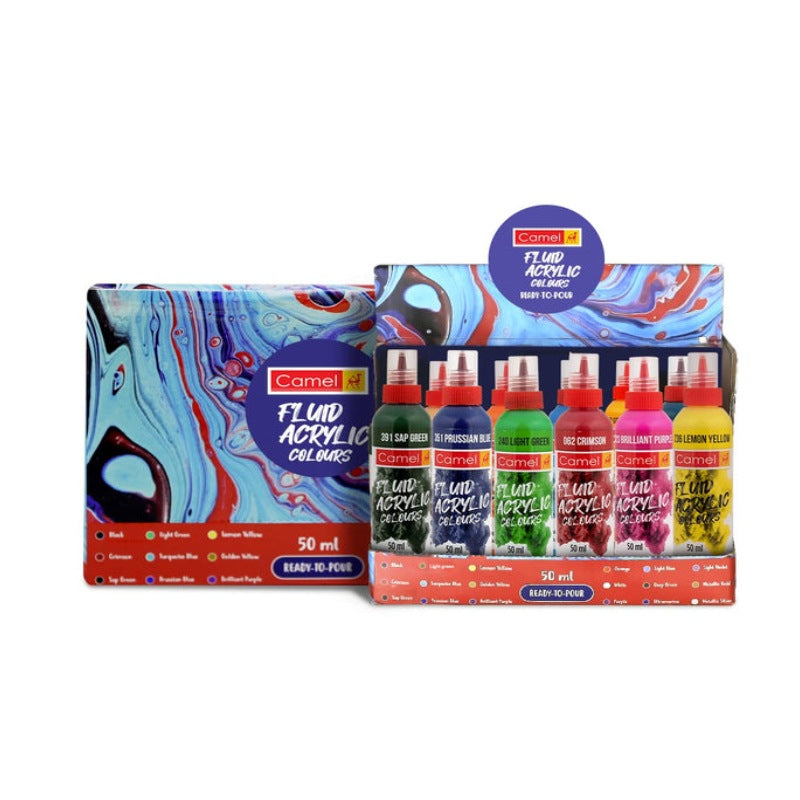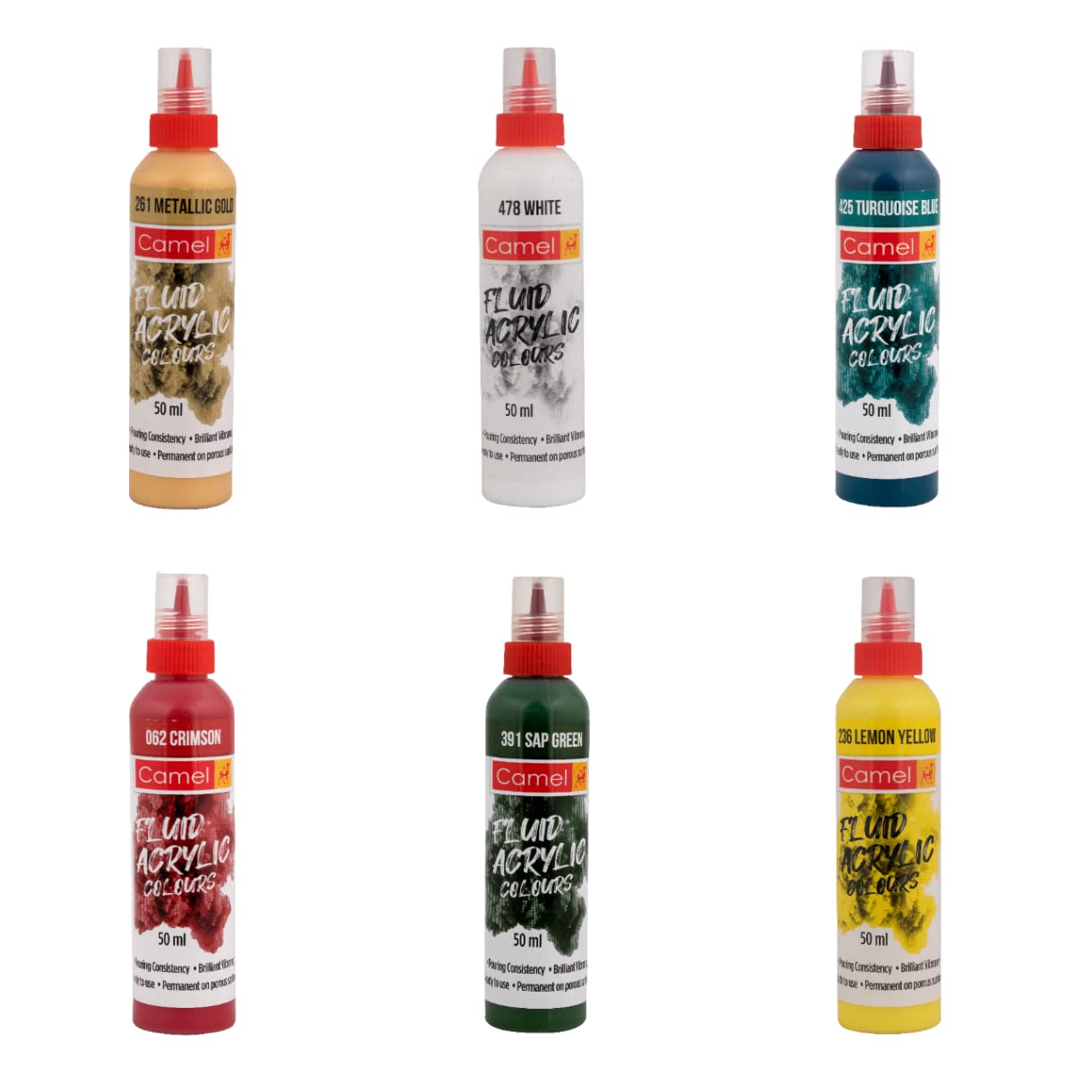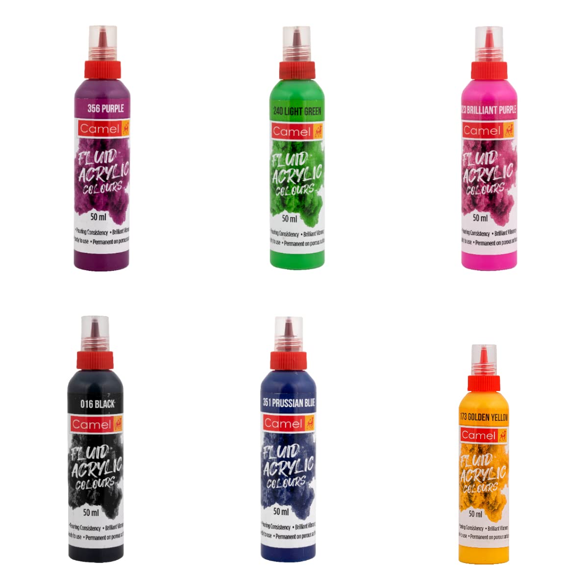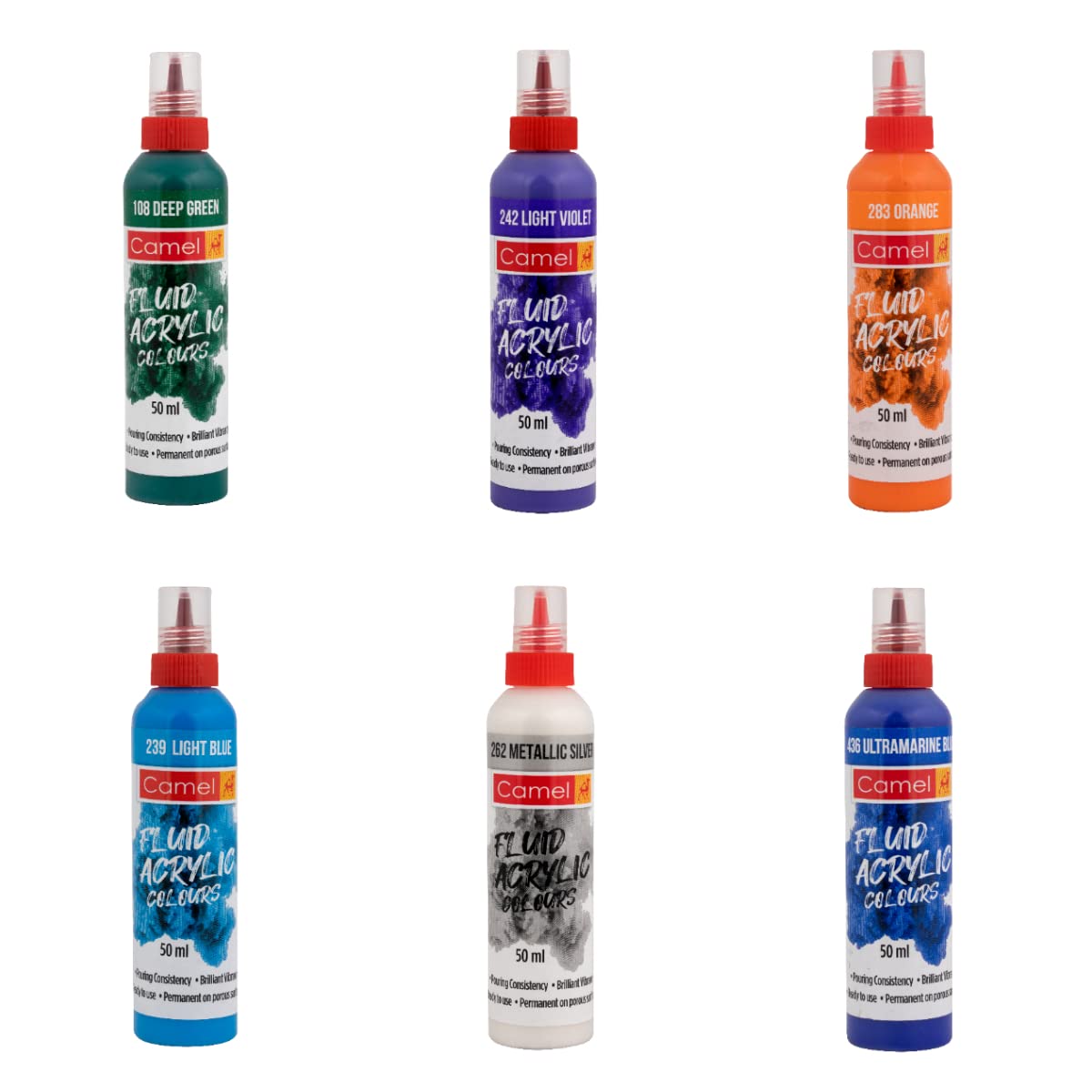 Camel Fluid Acrylic Colours 18 Shades of 50ml, Multicolor, (3217838)