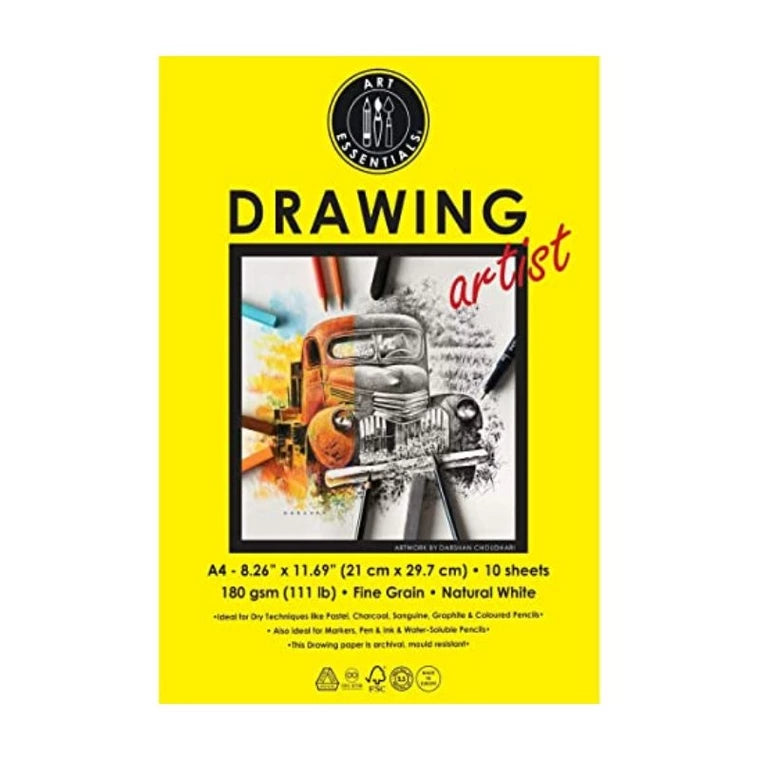 Art Essentials Drawing Artist A4 Natural White Fine Grain 180 GSM Paper