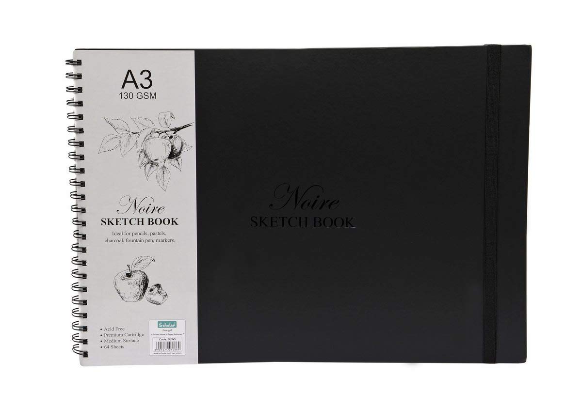 Scholar Noire Sketch Book (A3) (130 GSM Natural Shade Cartridge Paper) (Wiro Bound + Elastic Closure)