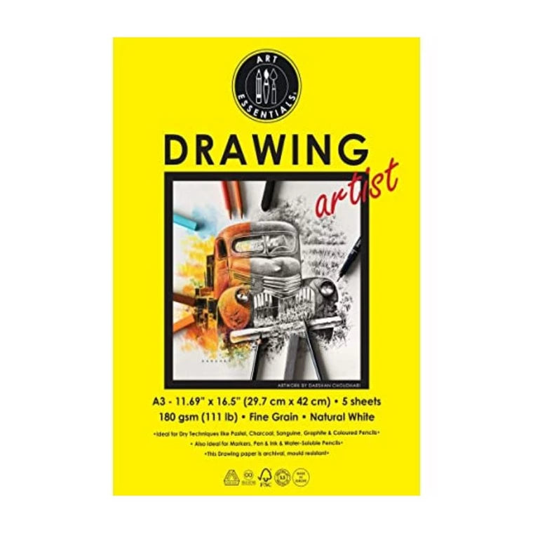 Art Essentials Drawing Artist A3 Natural White Fine Grain 180 GSM Paper