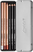 An assortment of top quality pencils with extra-durable leads and exceptional smoothness on the paper. A good balance between oil based and oil free pencils: ideal for sketching and drawing. They have high colouring power, leaving a soft imprint which can be easily blurred. Use of fixative is recommended. The set contains: 1 Soft Carbon pencil, 1 Medium Charcoal pencil, 1 Black Chalk pencil, 1 Sanguine pencil (oil based), 1 Light Brown Sepia pencil (oil free), 1 Medium White Chalk pencil (oil free)